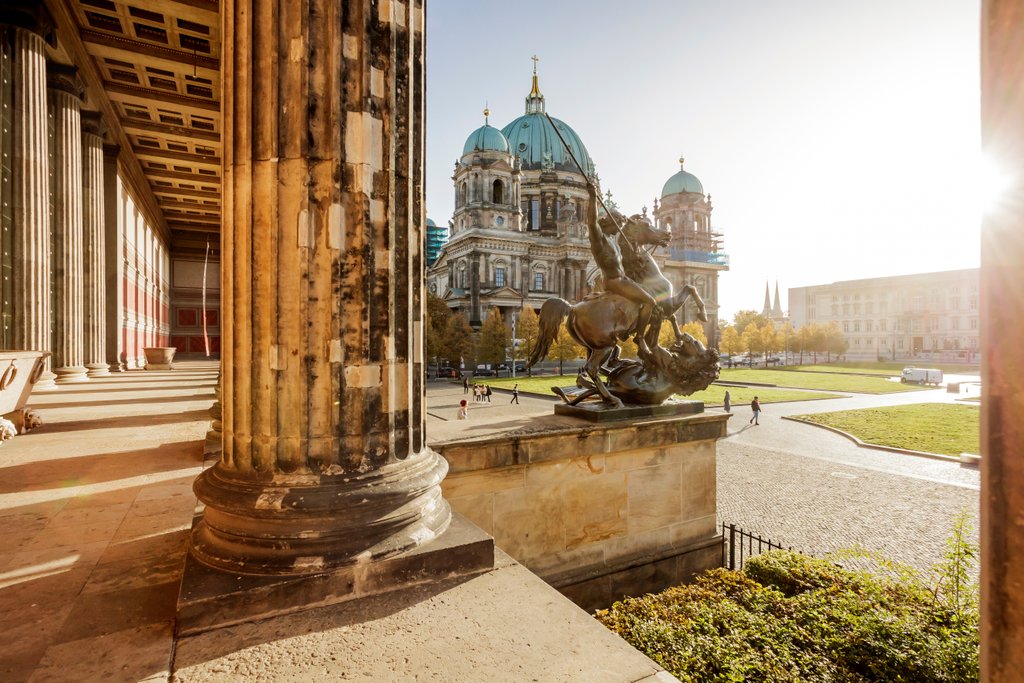 Würdevoll erhebt sich das Bode-Museum über dem Wasser und fällt mit seiner imposanten Kuppel sofort ins Auge. Durch seine Lage an der nördlichen Spitze der Spreeinsel gilt es als Pforte zu den Kunstschätzen der Museumsinsel. Das Bode-Museum vereint mehrere Sammlungen: die Skulpturensammlung und das Museum für Byzantinische Kunst sowie das Münzkabinett. Auf Ihrem Rundgang werden Sie unter anderem Werke von einigen der bedeutendsten Bildhauer Europas begegnen, wie Tilmann Riemenschneider, Niclas Gerhaert van Leyden, Donatello oder Antonio Canova. Im Zusammenspiel mit den Skulpturen werden zudem Kunstwerke der Gemäldegalerie präsentiert. Erkunden Sie die Entwicklung der europäischen Kunstgeschichte. Tauchen Sie ein in die Welt antiker Mythologien und biblischer Geschichten