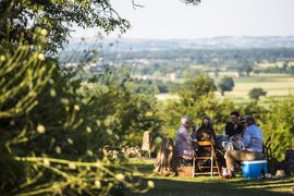 - Feines Picknick an einem schön gedeckten Tisch und dem Schutz einer Marquee, alternativ 3-Gänge Menü in dem "Festival Restaurant" in der (den) langen Aufführungspause(n)